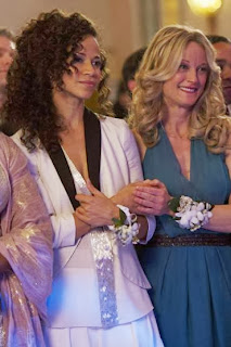 Lena and her Mom have a discussion on how skin color defines how black you are. (deep convo for an ABCFAMILY show, and I have to say I agree with parts of both of their arguments) Lena is offended because to her mother she not black because she is mixed. Being the good wife, Stef takes Lena a glass of wine to help her cool off.